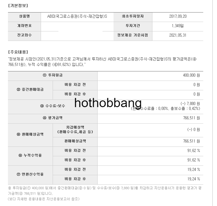 AB미국그로스증권펀드 장기투자 수익률입니다.